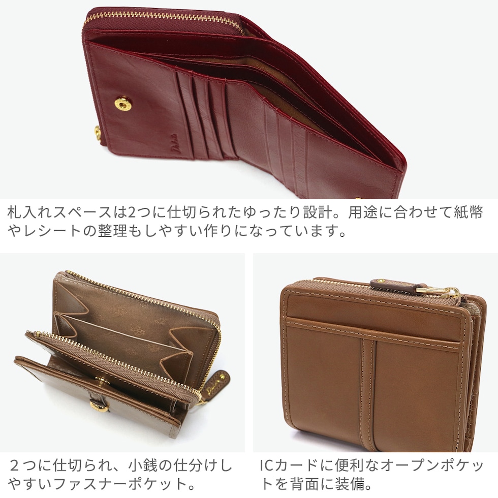 ダコタ 二つ折り財布 レディース ブランド Dakota 財布 本革 革 レザー 牛革 二つ折り サイフ ミニ財布 コンパクト ウォレット かわいい 上品 レトロ ベルト おしゃれ 小銭入れ クーポラ 0031721 新作 2025