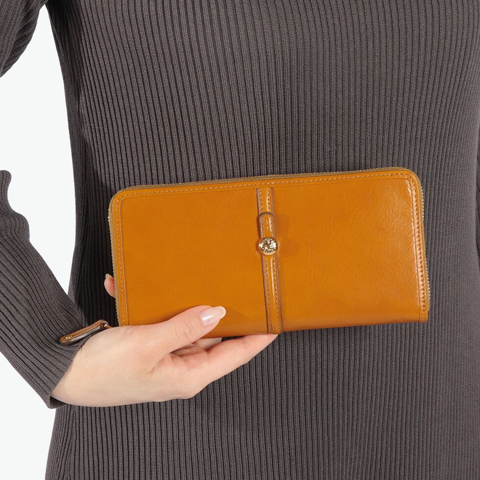 クラシカルな長財布 ベルトデザインに丸い金のカシメでアクセントを効かせた「クーポラ」シリーズのラウンドファスナー長財布。ころんとしたドーム型のカシメは、イタリアにある大聖堂「クーポラ」をイメージしています。かつてのヨーロッパの建築様式から着想を得たモチーフに、ベーシックなベルトデザインを合わせることで、クラシックな上品さと今っぽいムードを演出しました。 |