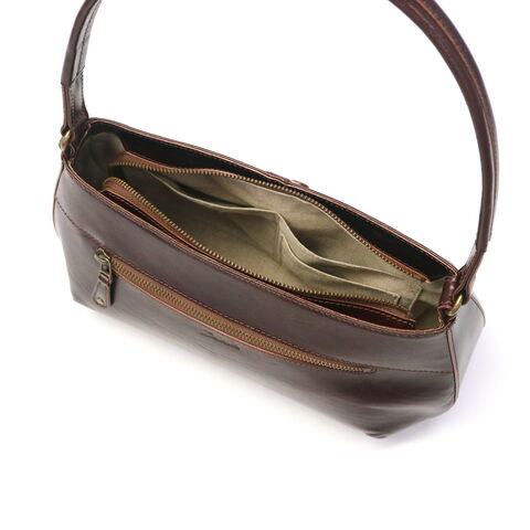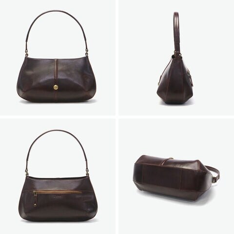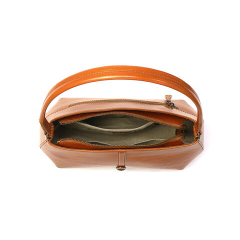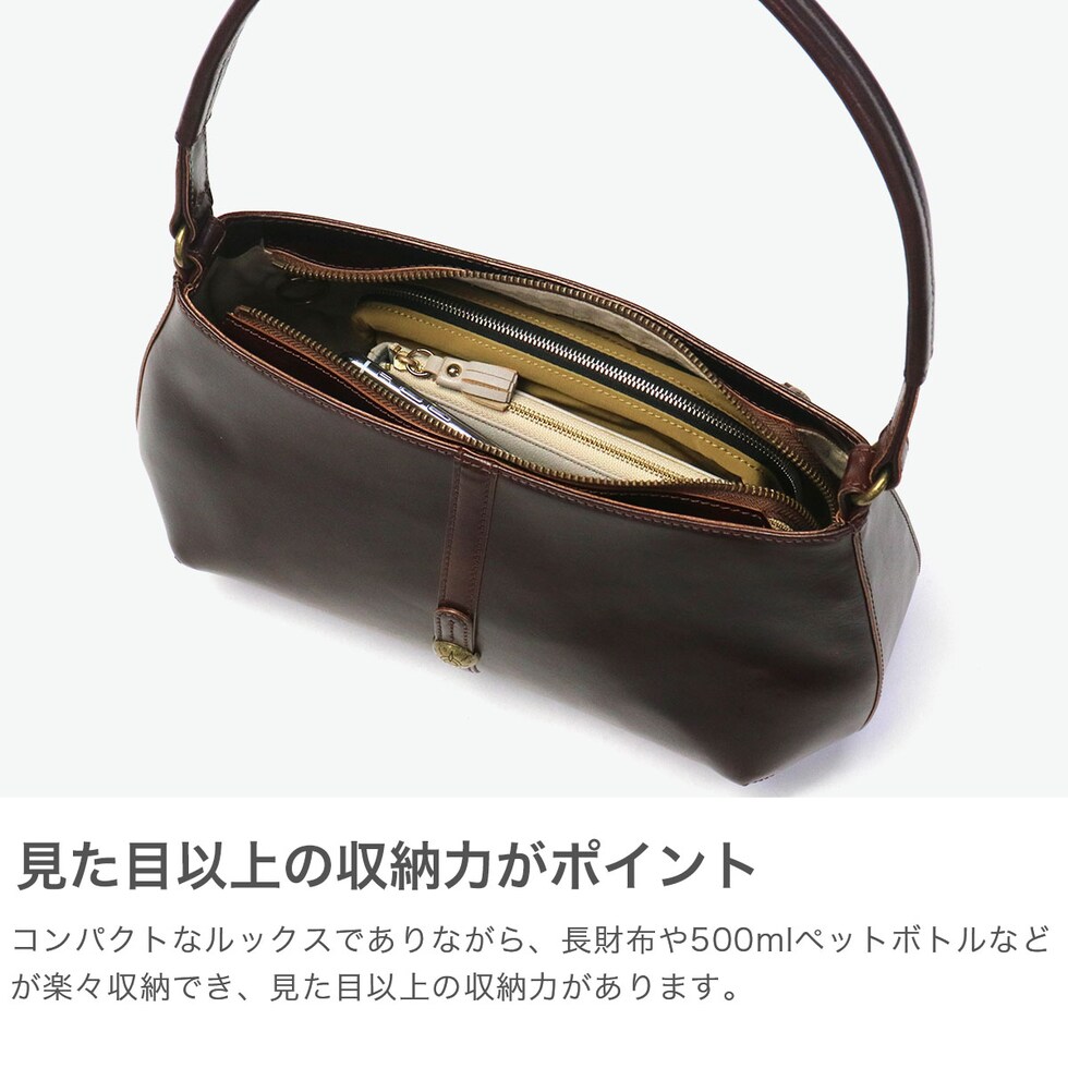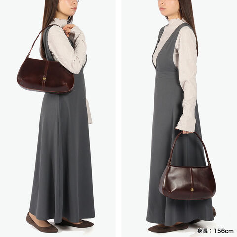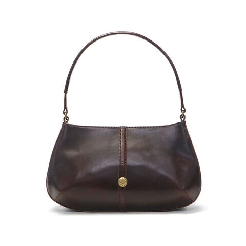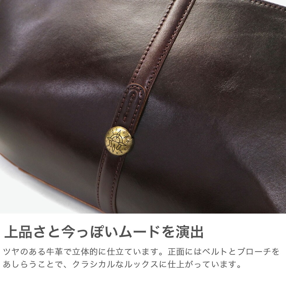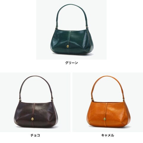 | ベルト&金のカシメで クラシカルな仕上がり ベルトデザインに丸い金のカシメでアクセントを効かせた「クーポラ」シリーズのハンドバッグ。かつてのヨーロッパの建築様式から着想を得たモチーフに、ベーシックなベルトデザインを合わせることで、クラシックな上品さと今っぽいムードを演出しています。タイムレスな魅力が溢れるバッグです。 |