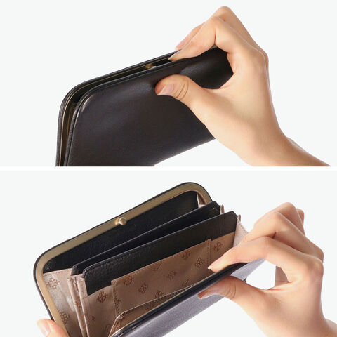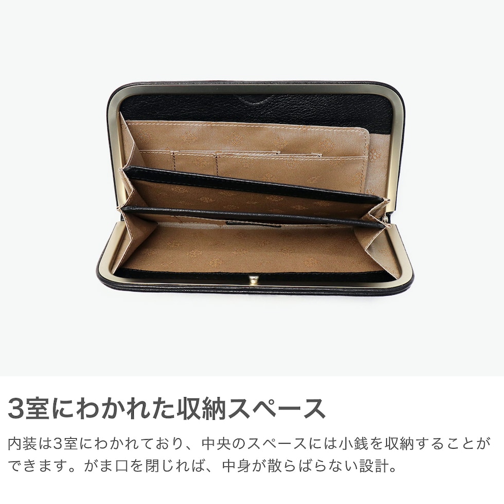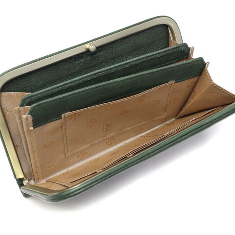 熟練の職人が仕立てた、上品でモダンながま口ウォレットシリーズ『グラツィア』。こちらは、スリムなつくりでスッキリと持てる長財布です。天溝押口という特別な口金を採用し、ツマミ部分をなくしたことで見た目のスマートな印象に。押すだけでパチンと開け閉めできる実用性も兼ね備えています。