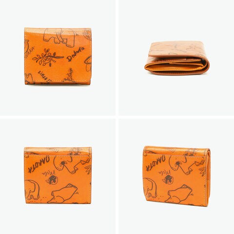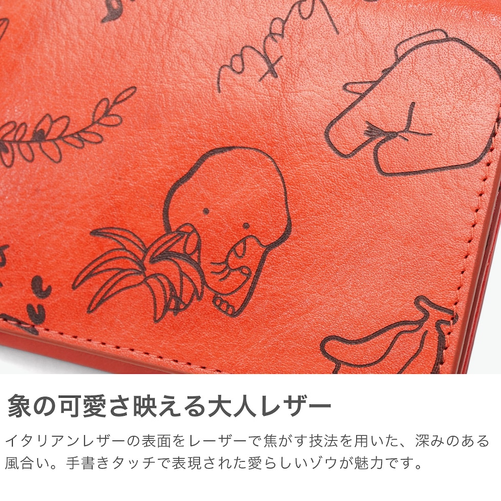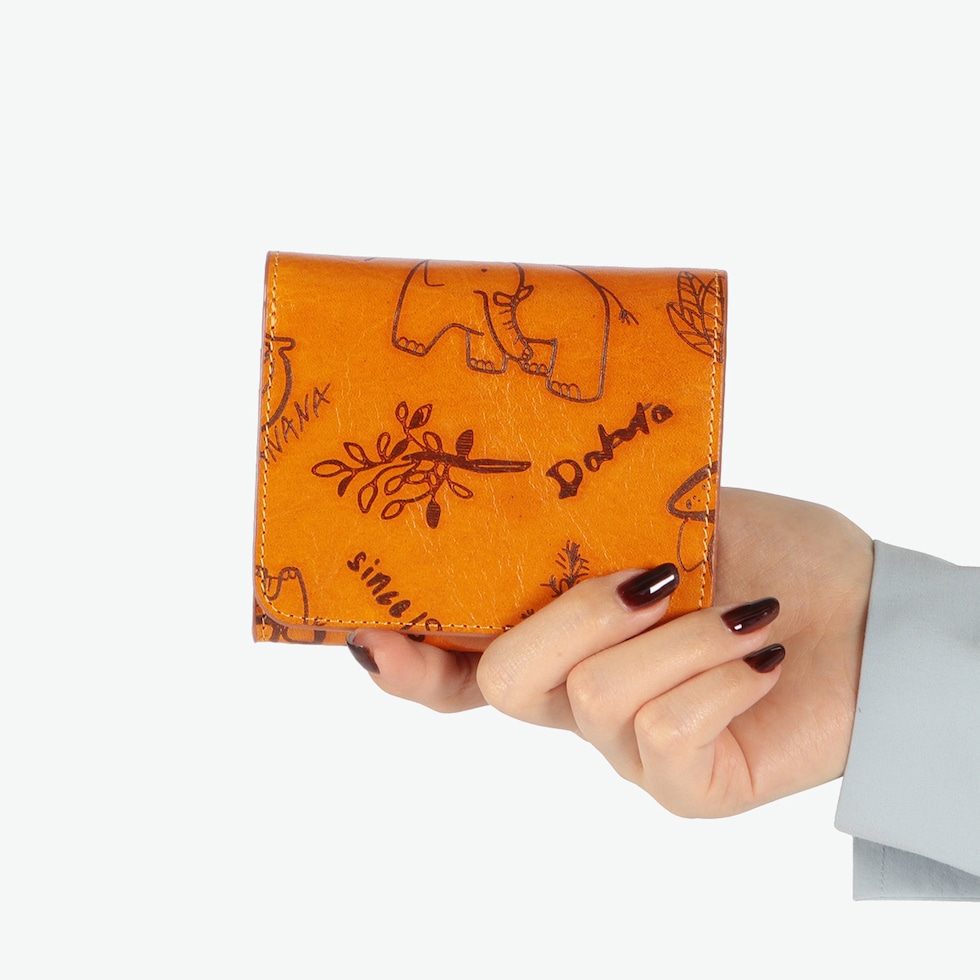 贅沢革の二つ折り財布 自由気ままに過ごすゾウたちを描いた、イタリアンレザーのお財布シリーズ『エレファンテ』の、BOX型小銭入れ付きの二つ折り財布です。手書きタッチのイラストで表現された愛らしいデザインが魅力のアイテム。深みのある風合いに仕上がっており、上品でありながら遊び心溢れる逸品となっております。 |
