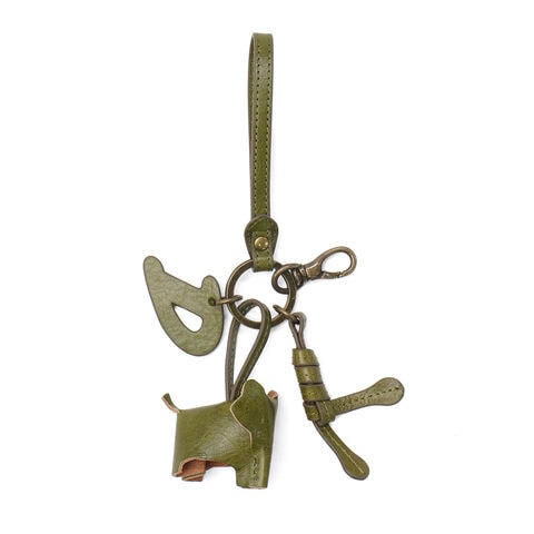キュートなキーホルダー レザー仕立てのゾウのモチーフが愛らしい、キーホルダーです。ナスカンフック付きで、バッグなどに簡単に取り付けが可能。ゾウの他にもレザーチャームが複数ついているので、バッグにアクセントを添えてくれます。お揃いでの使用や、ギフトにもおすすめのアイテムになっています。 |
