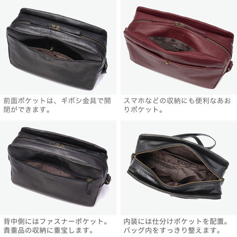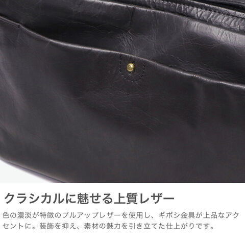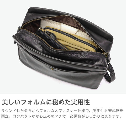 | 大人の魅力を引き出す シンプルデザイン ラウンドフォルムとビンテージ調の風合いが魅力の『ネロ』シリーズのショルダーバッグです。横長デザインで、荷物の出し入れがしやすく、長財布やペットボトルもすっきり収納。プルアップレザーならではの美しい濃淡が、落ち着きのある上品さを引き立てます。フロントのギボシ金具がクラシカルな印象をプラス。装飾を控えたシンプルなデザインが、素材の魅力を一層引き立て、大人の装いにさりげなく寄り添います。 |
