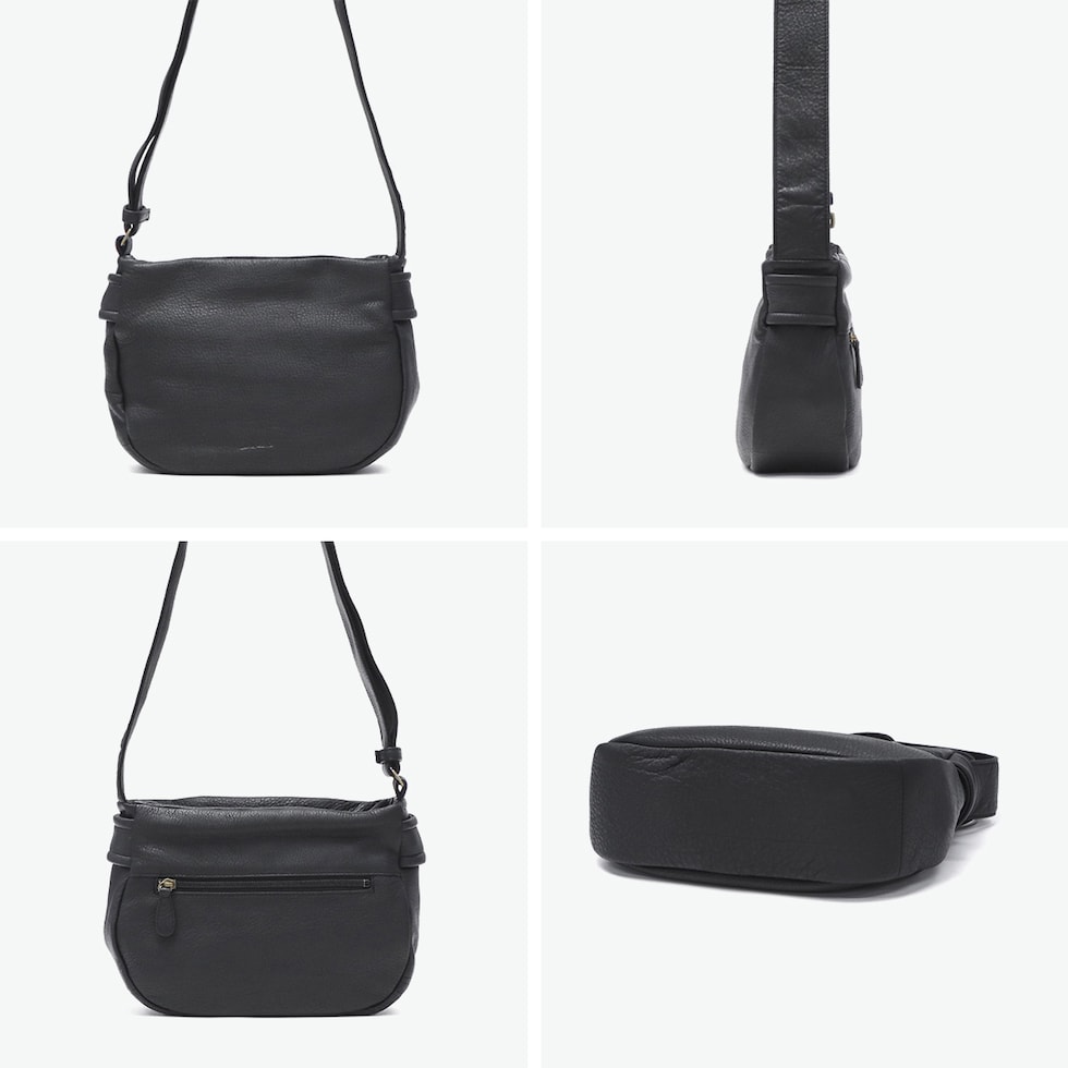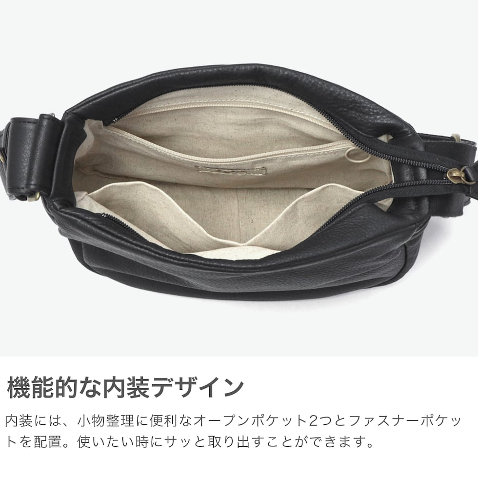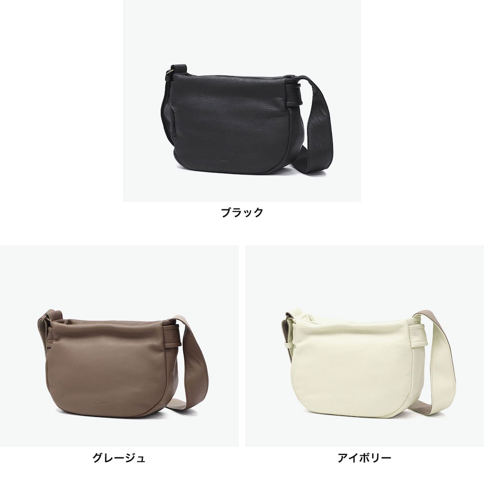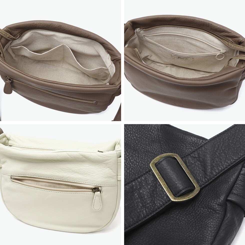 | デザインが引き立つ しなやかレザーの質感 柔らかな牛革とふっくらフォルムが魅力のショルダーバッグです。コンパクトな見た目ながらも、必要なものはしっかり入る日常使いしやすいサイズ感です。太めのショルダーストラップは肩当たり良く、安定感も抜群。くたっとした質感と丸みのあるシルエットが、シンプルながら洗練された印象を演出します。 |