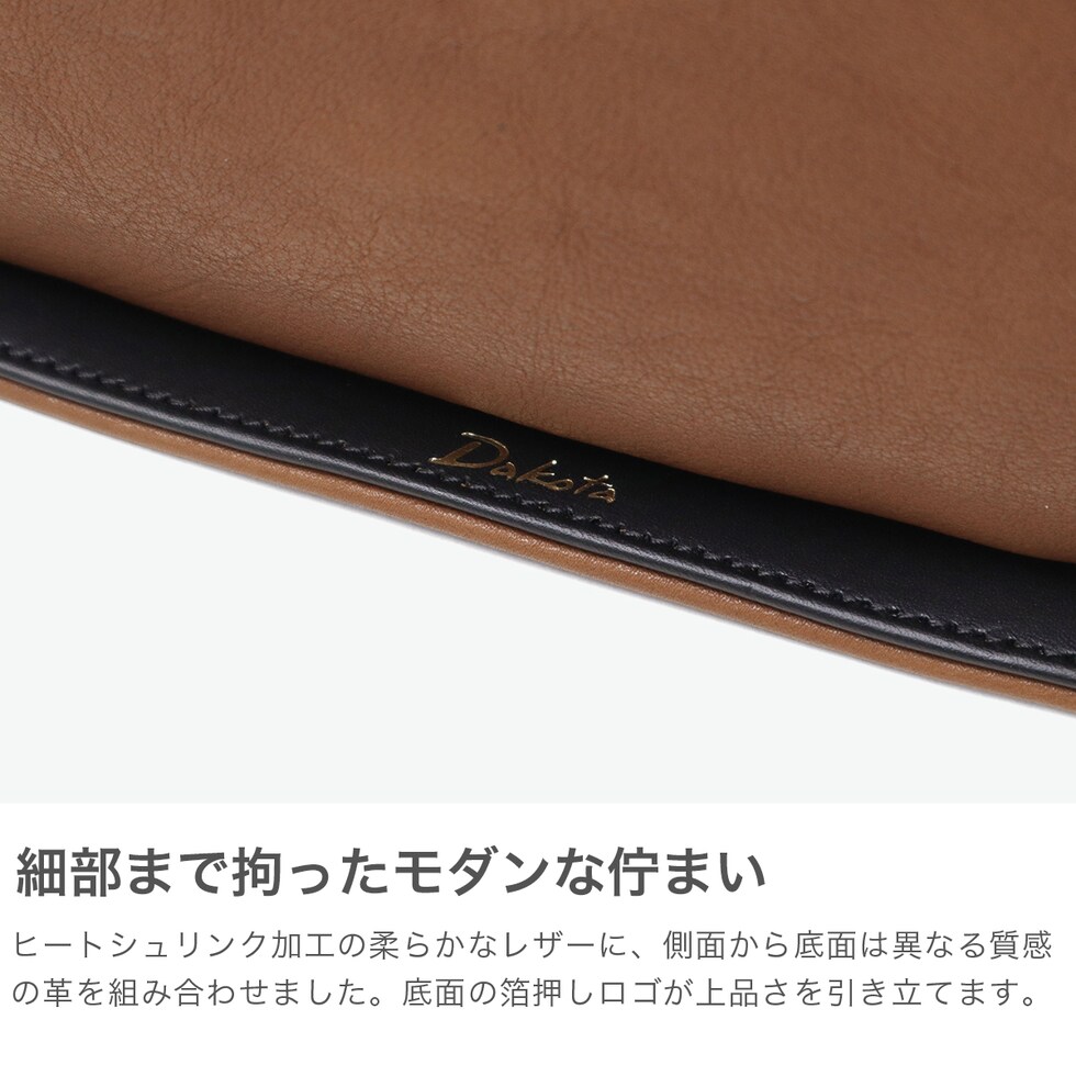 | ナチュラルレザーの モダンで上品なバッグ ナチュラルレザーとモダンなデザインを組み合わせた『イルベーネ』シリーズのショルダーバッグです。カラーコンビの帯にあしらった小さな箔押しロゴが、さりげない上品さを添えます。取り外し可能なショルダーストラップで、手持ち・斜めがけとアレンジも自在。オン・オフ問わず活躍する一品です。 |