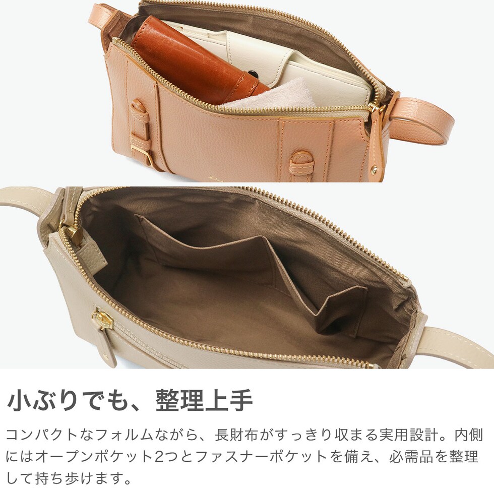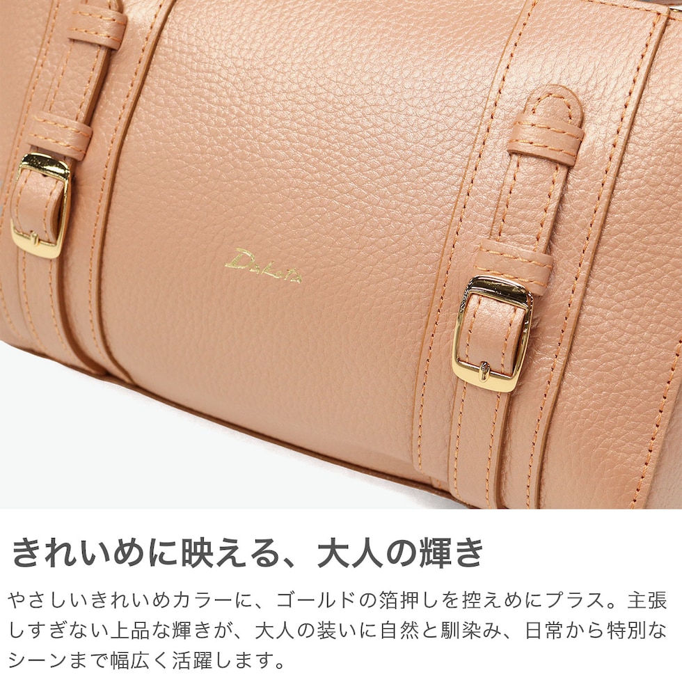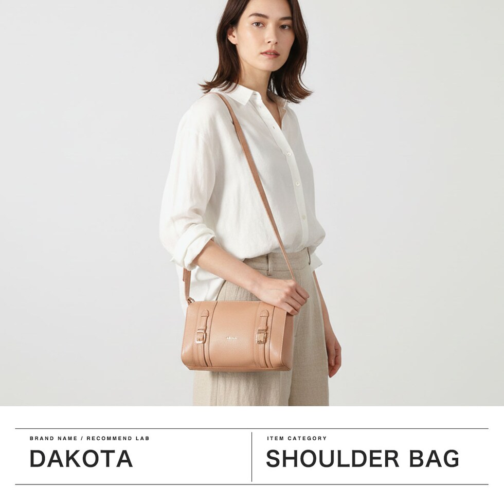 | 大人がときめく 限定デザイン 70年代のDakotaのデザインをリプロダクトしたロングセラー『キューブ』シリーズから、シュリンク調型押しとパール加工を施した特別モデルが登場。ベルトデザインと箔押しで上品に仕立てたコンパクトショルダーバッグです。コンパクトながら長財布も収まり、内ポケット付きで小物の整理も便利です。きれいめカラーと上品なパールの輝きがエレガントな、大人のデイリーバッグです。 |