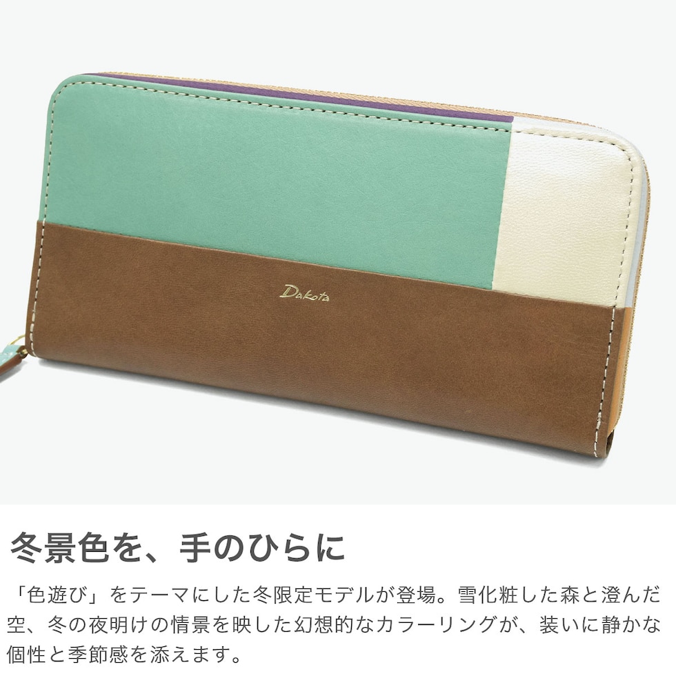ダコタ 長財布 レディース Dakota ブランド ラウンドファスナー 本革 革 レザー 小銭入れ カード おしゃれ かわいい 財布 サイフ ウォレット 配色 ロゴ 大容量 収納力 ブロッコ 冬限定モデル 0032072