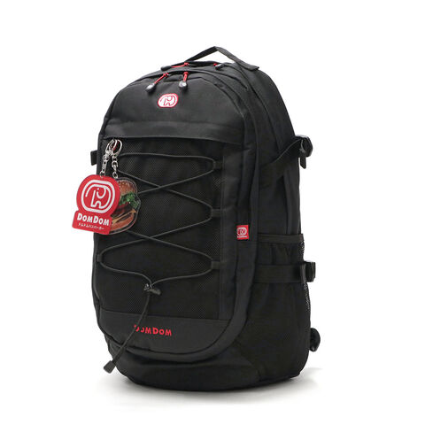 ドムドム リュック DOMDOM ドムドムハンバーガー リュックサック バックパック デイパック バッグ 通学 通学リュック B4 A4 30L 大きめ 大容量 軽量 撥水 どむぞうくん バンジーコード 女子 男子 黒 レディース メンズ DM001