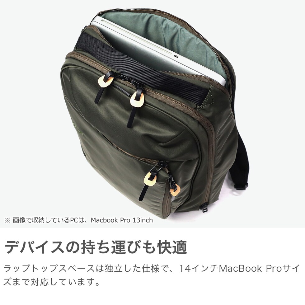 高機能バックパック 超耐久撥水加工「ダントツ撥水」を施した高密度ナイロンツイル素材を使用したバックパック。抜群の水切れ性と耐久性で、撥水機能が長続きします。立体的なフォルムが特徴的で、独立したラップトップスペースやキャリーバーへのセットアップなど、ビジネスシーンとの兼用も考えられたデザインと機能性になっています。 |