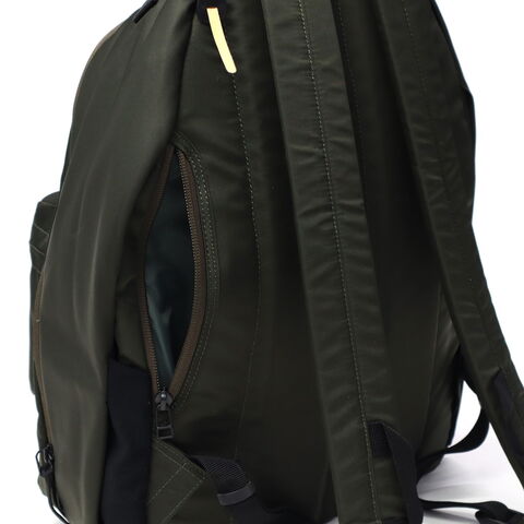 超耐久撥水加工「ダントツ撥水」を施した高密度ナイロンツイル素材を使用したデイパック。抜群の水切れ性と耐久性で、撥水機能が長続きします。サイドポケットは内容物が外から見えないように特殊なパターンを採用。普遍的な形状を採用しつつ使いやすさを考えた仕様で、デザインはできる限りテクニカルにならないように努めています。
