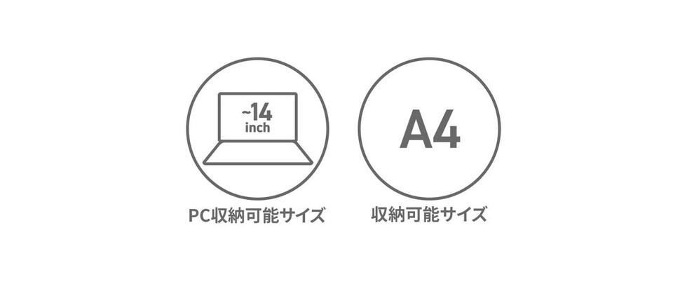 | 仕様 | <外側> ジップポケット(M)×1 └ 内蔵 ポケット(S)×2 スナップポケット(S)×1 ジップポケット(S)×1 <内側> PC収納×1 メッシュポケット(M)×2 ジップポケット(M)×1 |