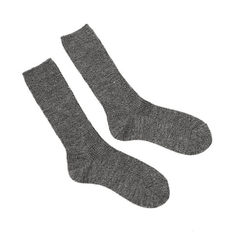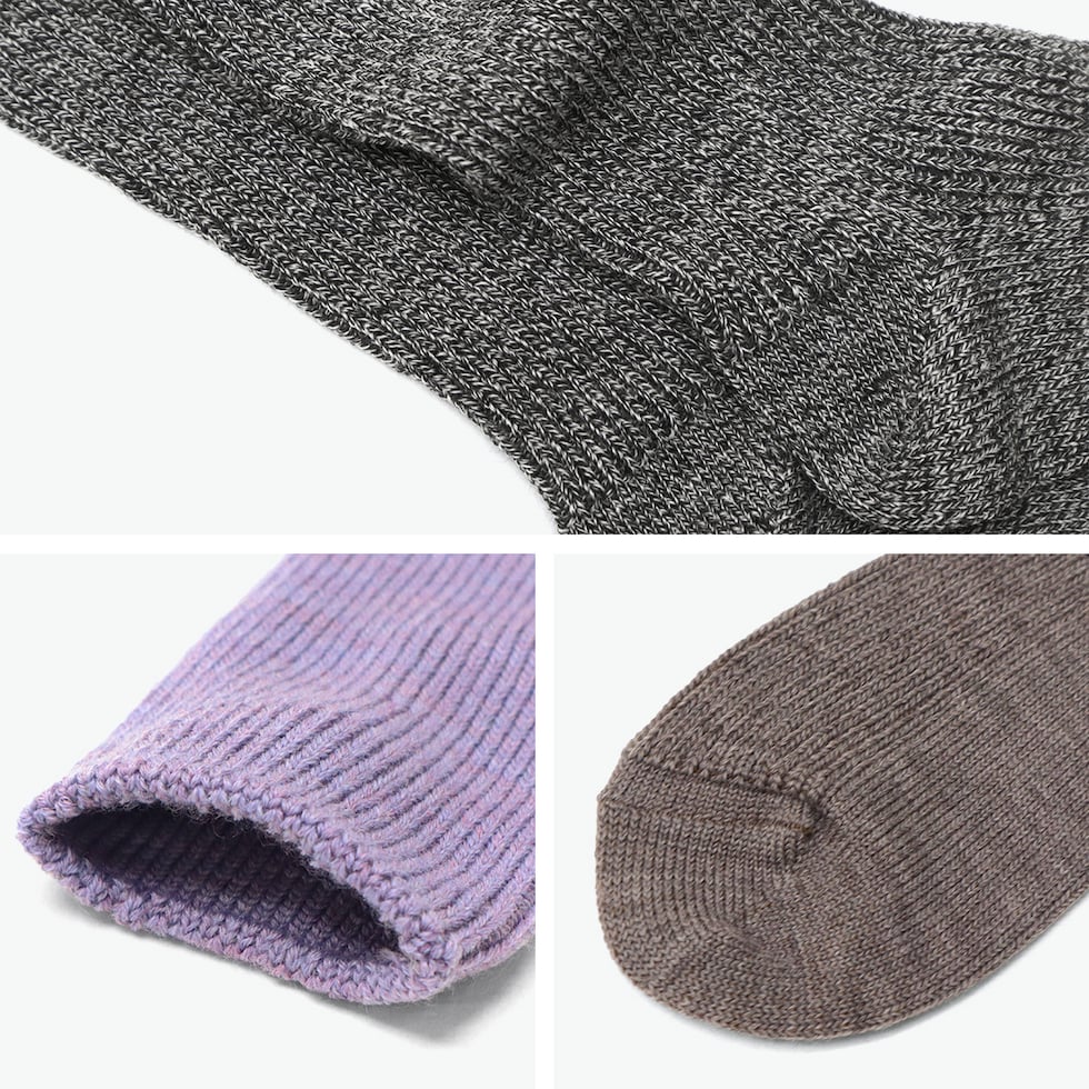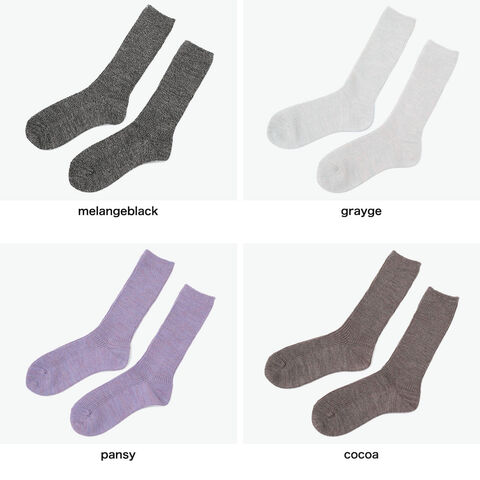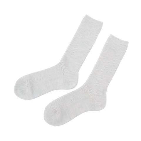 | 毎日に寄り添う 心地良い質感 日常使いしやすい、ハイソックスよりも短めのミドル丈ソックス。白度・強度・バルキー性に優れたニュージーランドメリノウールで編み上げています。防縮加工を施し、扱いやすくソフトな質感が心地よい一足です。ざっくりとしたローゲージのリブ編みが、ゆったりと足を包み込むような履き心地に。 |