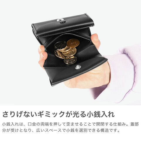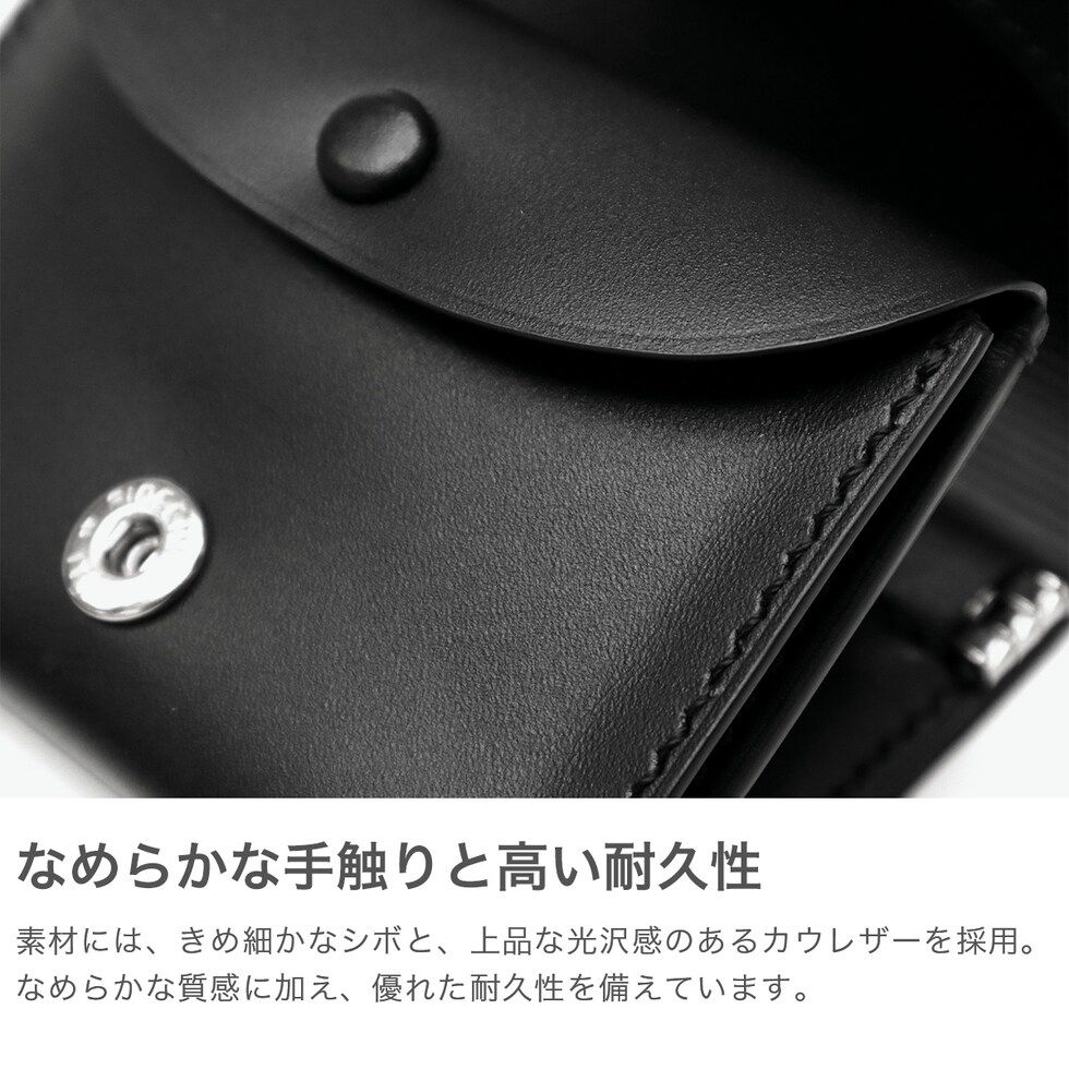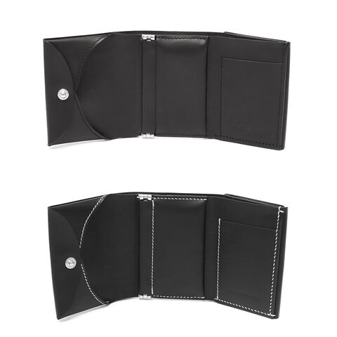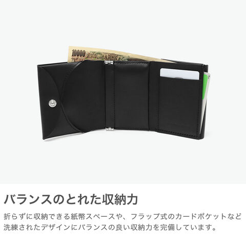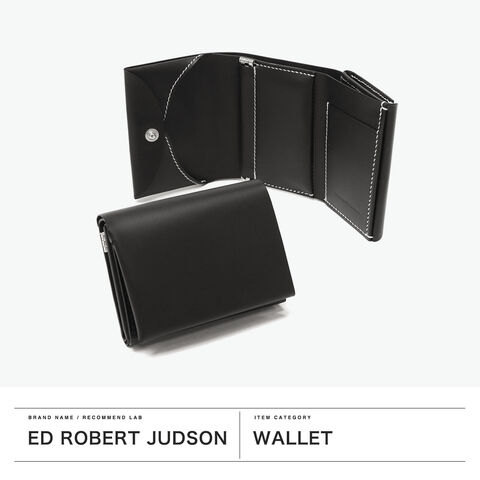 | 洗練されたデザインと 無駄のない機能美 "日常の物事をヒントに"。思わず触りたくなるような『仕掛け』を用いたアイテムを製作するED ROBERT JUDSON。こちらは、シンプルかつコンパクトな三つ折りの財布。蓋部分が受けとなり、小銭が選別しやすい構造が特徴的。シックなルックスにミニマルで機能的なデザインが、他にはない仕上がりです。 |