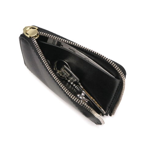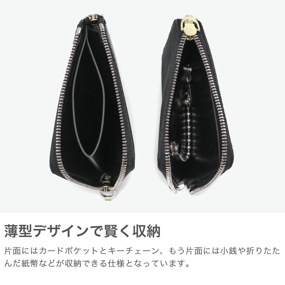 | 2つのポケットを備えた 最小サイズのミニ財布 1本のファスナーから2つのポケットが現れる独自の構造をもったラウンドジップ財布。スライダーの色でポケットの判別ができ、仕分けがしやすい構造です。XSサイズはクレジットカードがぴったり収まる最小サイズ。内側のキーチェーンはドットボタンで外すことが可能です。 |