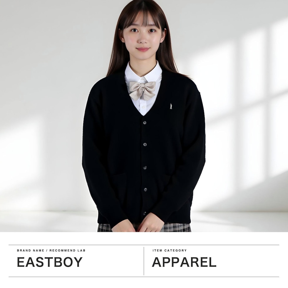 イーストボーイ カーディガン レディース 学生 制服 EASTBOY 秋冬 秋 冬 薄手 黒 おしゃれ かわいい Vネック ラムウール ウール 女神刺繍 長袖 定番 通学 女子 女子高生 高校生 Venus ラムウールカーディガン7G 5216501