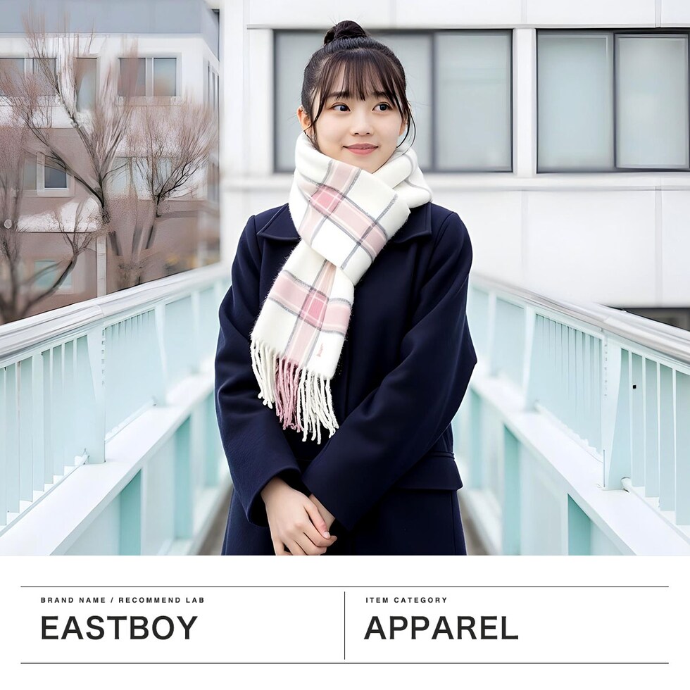 イーストボーイ マフラー レディース かわいい チェック EASTBOY ブランド チェック柄 ピンク 高校生 学生 暖かい 軽い 薄手 ラムウール おしゃれ チェックマフラー 5209613
