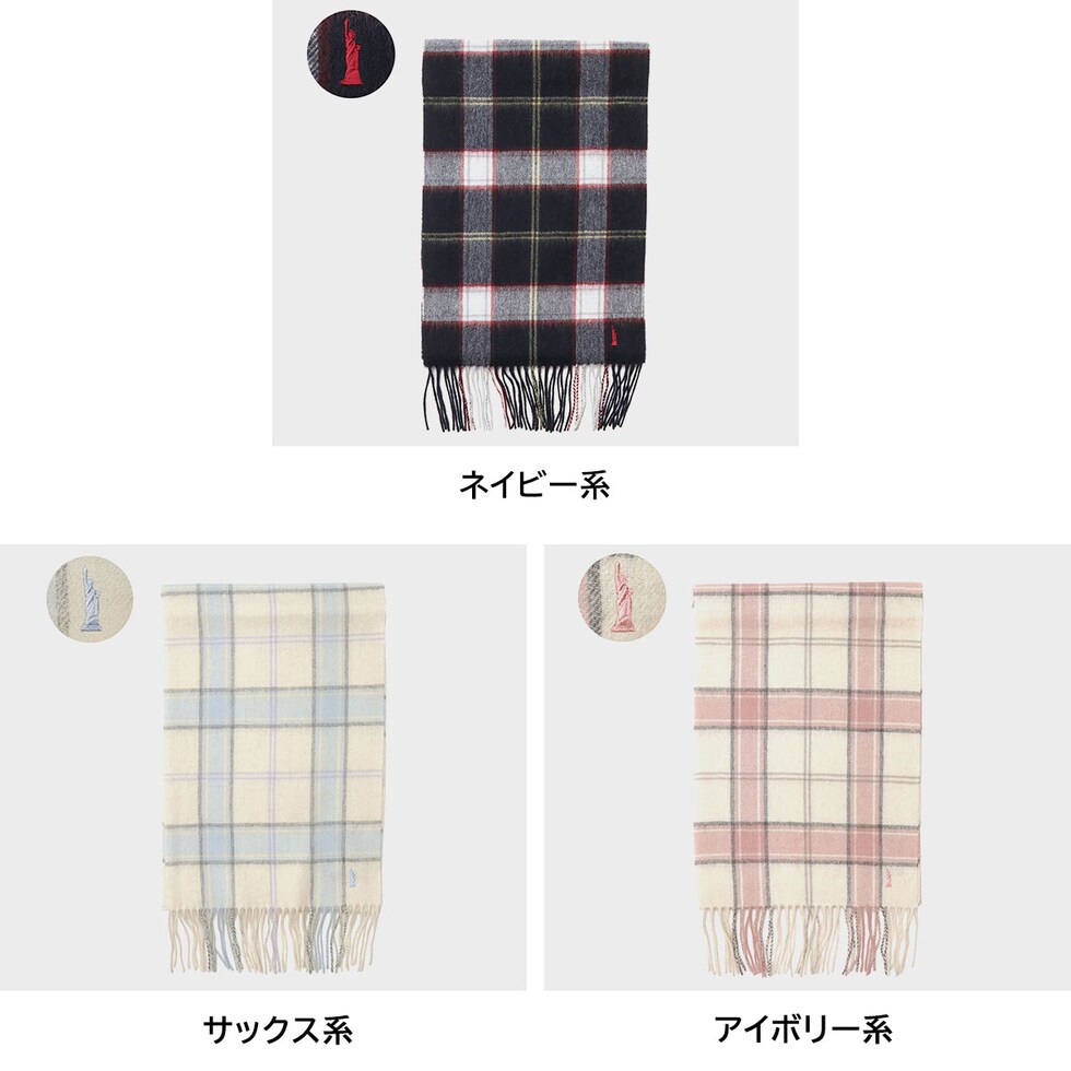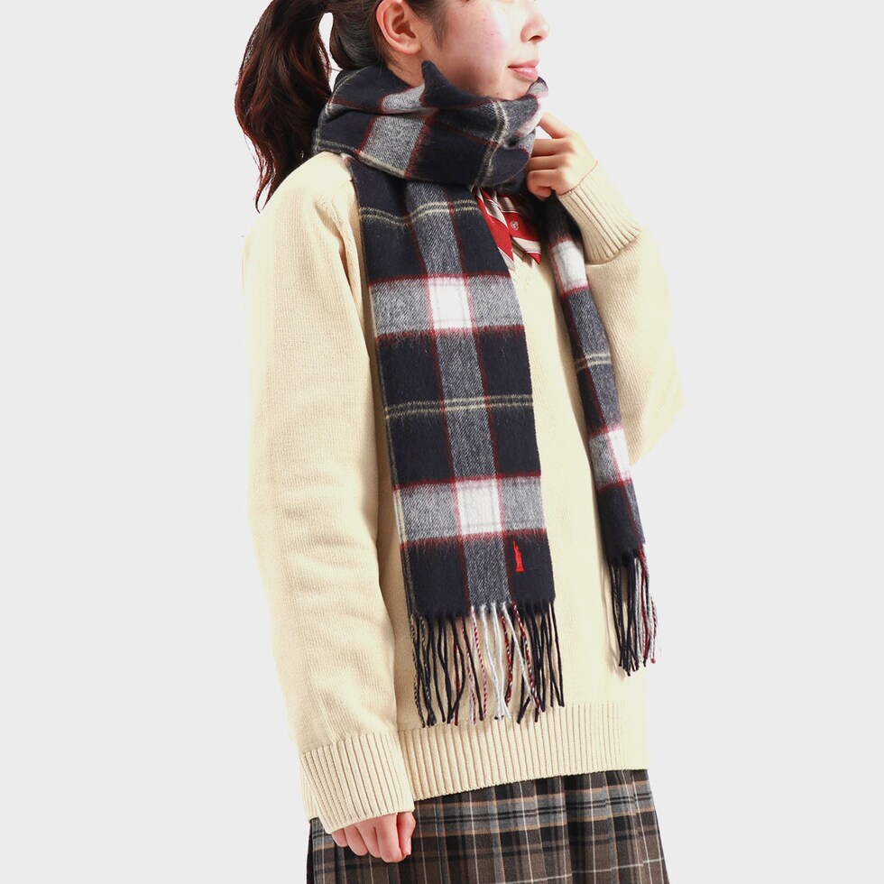 | チクチク感がない 心地よい着け心地 ふっくらとした、温かみのある風合が楽しめるチェックマフラー。素材には柔らかく保温性に優れたラムウールを使用し、肌触りが良く、首元がチクチクしません。ブランドのアイコニック女神の刺繍がさりげなくあしらわれており、ワンポイントアクセントに。ボリュームが出すぎない薄手の生地感のため、首まわりをスッキリと見せます。 |