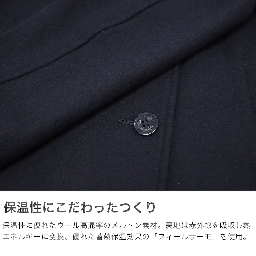 | 素材 | <表地> ウール混メルトン(毛 62%、ポリエステル 32%、アクリル 3%、ナイロン 2%、レーヨン 1%) <裏地> 複合繊維(ポリエステル)56%、ポリエステル 44% |