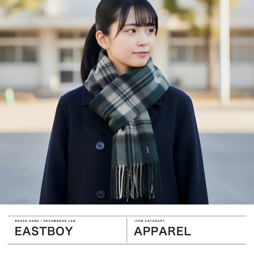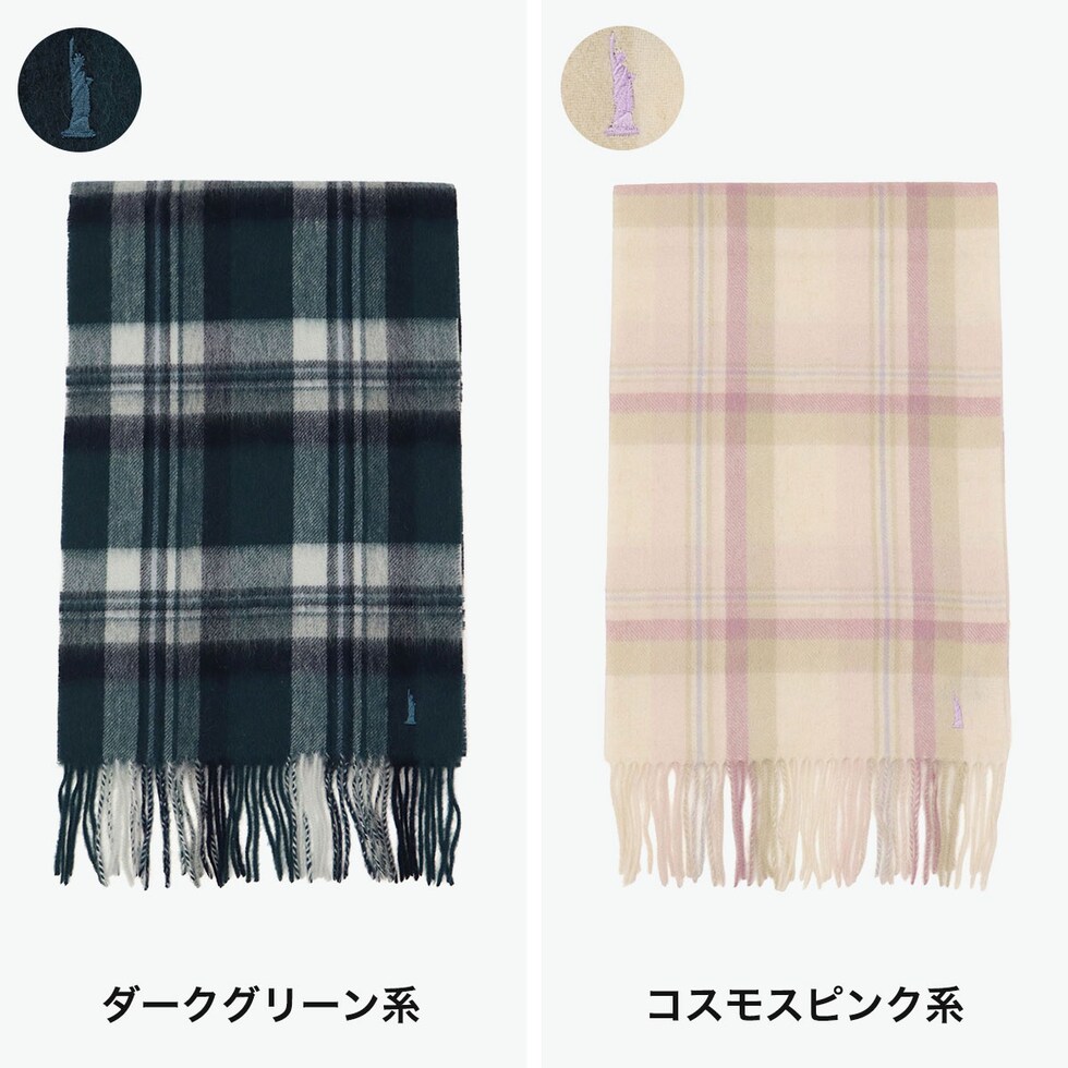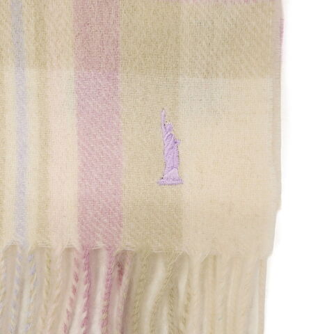 かわいいチェック柄 ふっくらとした、温かみのある風合が楽しめる人気のチェック柄マフラー。柔らかく保温性に優れたラムウールを使用し、起毛感があり柔らかな質感に仕上げています。女神刺繍入りで、『EASTBOY』のチェックスカートやコートとも相性抜群なデザイン。寒い季節の必需品として押さえておきたいアイテムです。 |