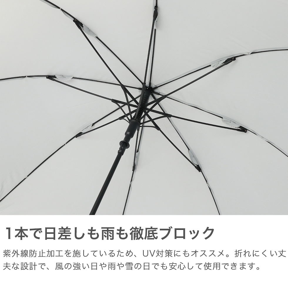 | 一振りキレイ 晴れも雨も◎ 一振りで体感できる水はけが、雨でもハレやかを演出する『FLO(A)TUS』シリーズの長傘。ジャンプ式で使いやすく、親骨60cmの大きめサイズ。耐風設計で風の日も安心、通勤や通学にもぴったりの一本です。 |