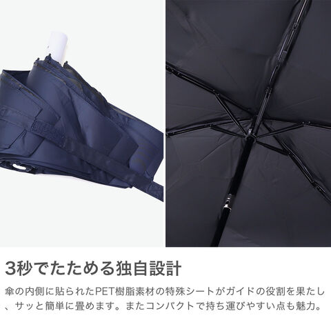 シワにならずに畳める傘 パッとさして、サッとしまえる『kowaza/コワザ』の晴雨兼用傘。世界初の形態安定技術を採用し、裏側に貼られたPET樹脂素材の特殊シートがガイドの役割を果たし、簡単に生地を巻くことが可能です。さらにワンタッチの自動開閉式でより便利な仕様に。遮光率・UVカット率ともに100%で、強い日差しをしっかりブロック。シンプルなデザインで、男女問わずユニセックスにご使用いただけます。 |
