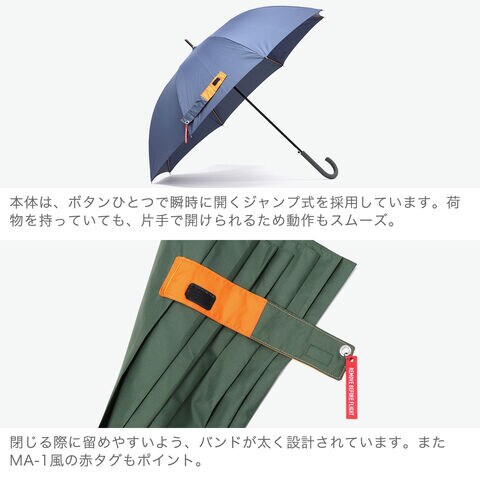 エクスピディショナリィ LD-1 長傘 メンズ レディース 雨傘 傘 ジャンプ式 ワンタッチ MA-1 大きめ おしゃれ カジュアル ミリタリー 通勤 通学 UVカット 耐風骨 丈夫 expeditionary LD-1 親骨65cm LD-MA1-65J