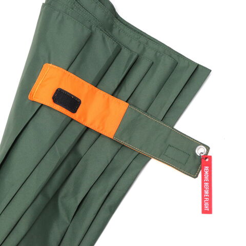 MA-1風デザイン雨傘 MA-1ジャケットをオマージュした、ユニセックス仕様の長傘。ファスナー使いや刻印入りのシリコンタブといったディテール、MA-1の象徴でもあるオレンジをポイントにあしらい、開くたびに遊び心と高揚感を添えるデザインに。ジャケットライクなニュアンスカラーが揃い、ファッションの延長線で楽しめる一本に仕上がっています。 |