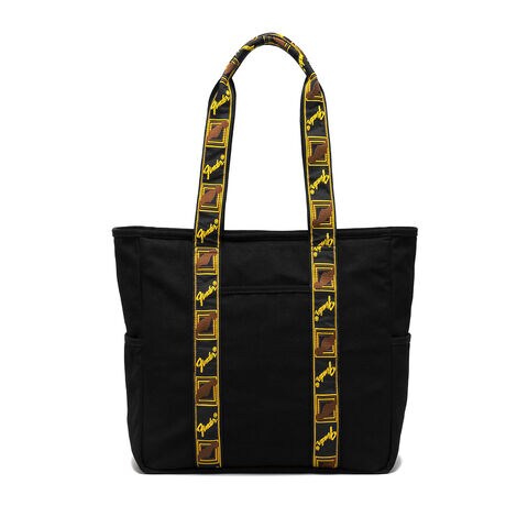 世界的楽器製造メーカー「Fender」のA4サイズのトートバッグ。フェンダーストラップの代名詞とも言えるモノグラムストラップを忠実に再現し、バッグのデザインに落とし込みました。本体素材にはコットンを使用しカジュアルな雰囲気に。またお出かけ時に持ち運びやすい実用的なサイズ感でシーンを問わず活躍できるアイテムです。