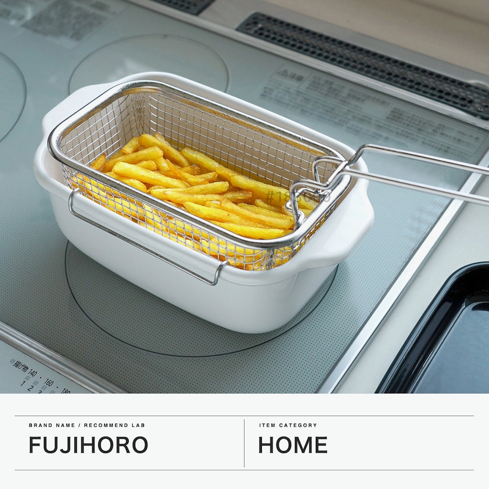 富士ホーロー 天ぷら鍋 角型 IH IH対応 ホーロー ミニ 温度計付き FUJIHORO 鍋 20cm 揚げ物 小さめ コンパクト 角型天ぷら鍋 フライヤーバスケット付き TP-20KFB
