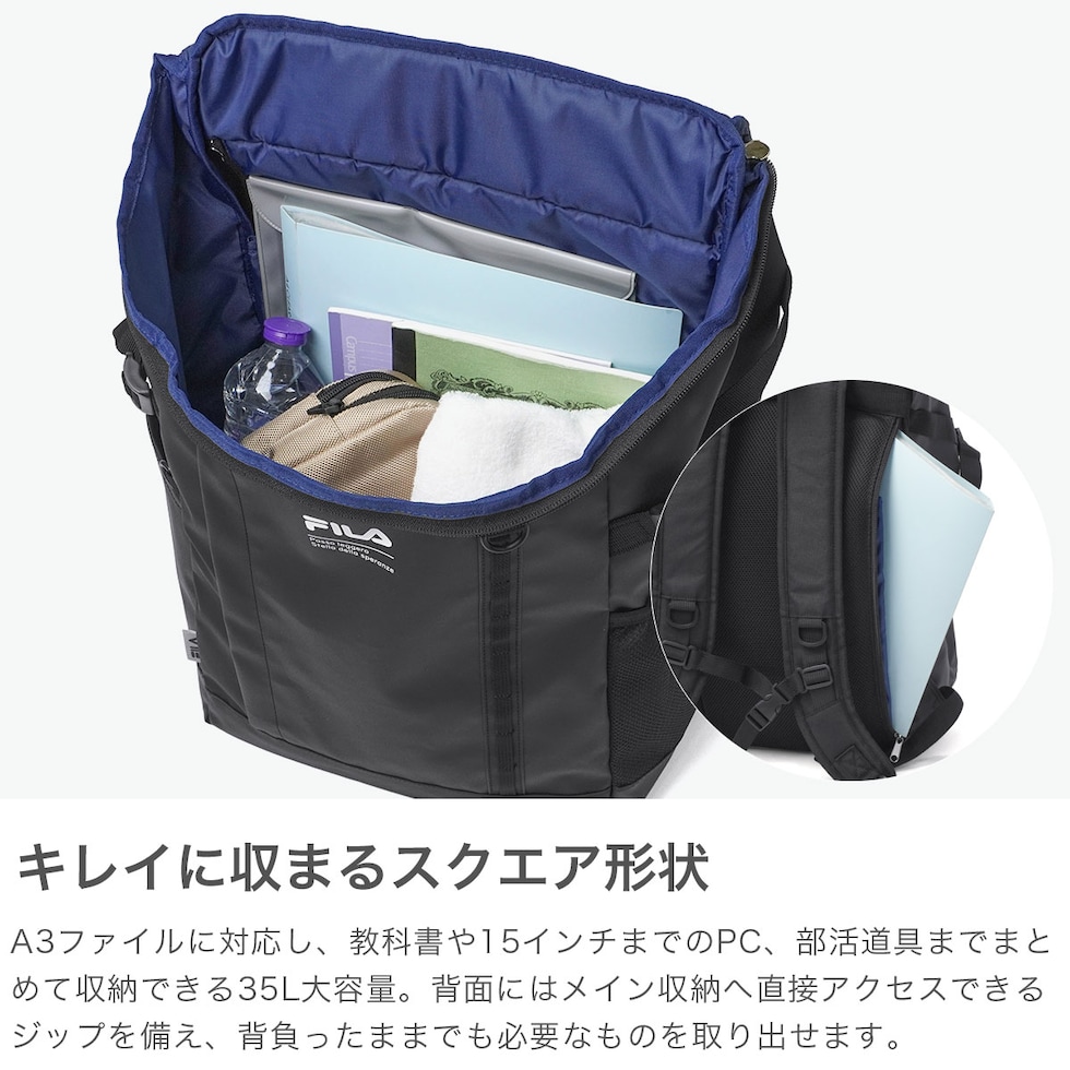 フィラ リュック メンズ レディース 大容量 通学 FILA 男子 女子 高校生 中学生 大きめ 軽量 軽い 撥水 ボックス型 スクエア おしゃれ ブランド デイパック リュックサック シンプル 35L A4 A3 カルテロ 7918