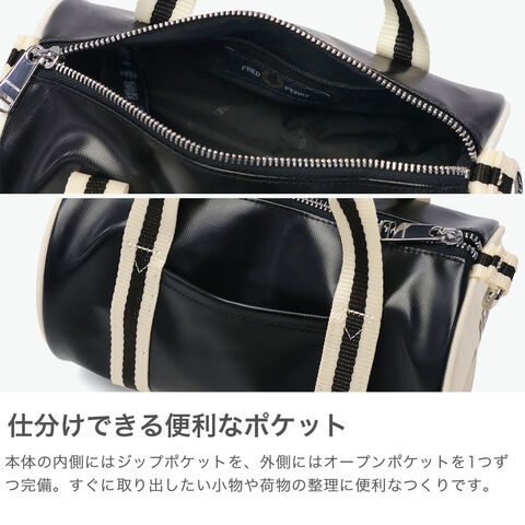 フレッドペリー ショルダーバッグ レディース メンズ FRED PERRY バッグ 小さめ おしゃれ ブランド 軽量 斜めがけ ミニボストン ミニショルダー ミニバレルバッグ 2WAY 3L Classic Mini Barrel Bag L9256