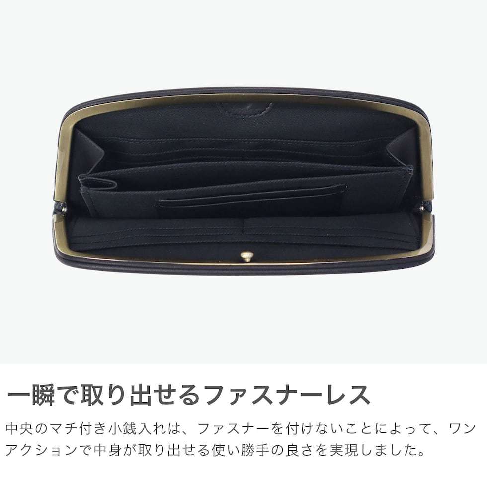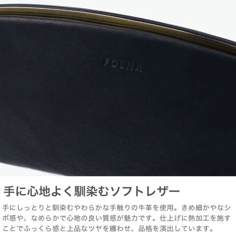 上品な大人のがま口 手にしっとりとなじむ柔らかな手触りの牛革を使用した「FOLNA RD」の人気シリーズ『SOFT LETHER』。無駄な装飾のない、シンプルかつミニマルなルックスの天溝がま口のお財布。がま口についている開閉のパーツが内側についている“天溝口金”は、簡単な動作で開閉できる優れた仕掛けのデザイン。前面と背面に札入ポケット2箇所を配し、小銭入れは中央のマチ付きポケット部分となっており、あえてファスナーを付けずワンアクションで出し入れが可能な仕様です。日本の職人の美しい手仕事を感じていただける上質な仕上がりとなっています。 |