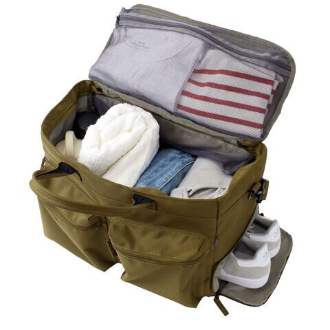 都会的な印象を与えるクラシックなボストンバッグ。27Lの収納力があり、1~2泊の旅行や普段使いにぴったりです。撥水加工で急な雨にも対応し、荷物が少なくても型崩れせず自立する設計が魅力◎取り外し可能なショルダーストラップで2WAY仕様に対応し、多機能ポケットで小物もすっきり整理できます。シンプルで洗練されたデザインは、さまざまなシーンで活躍すること間違いなしです。