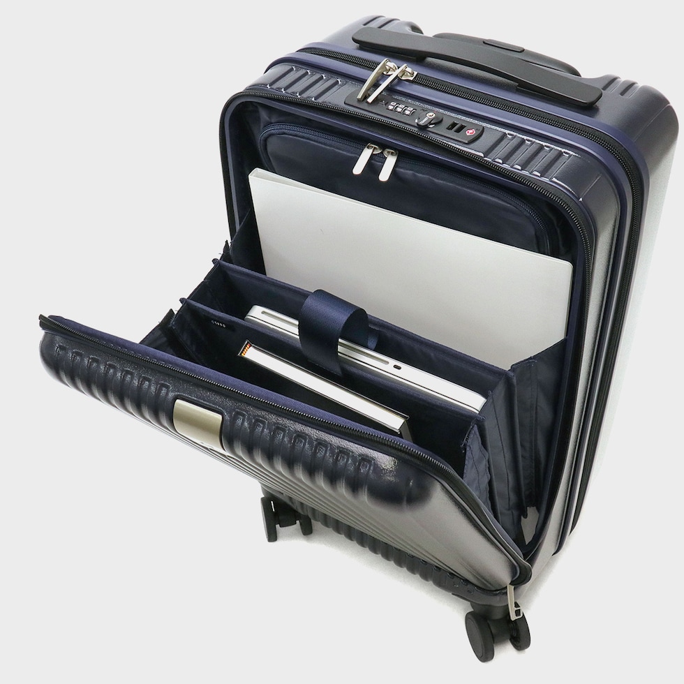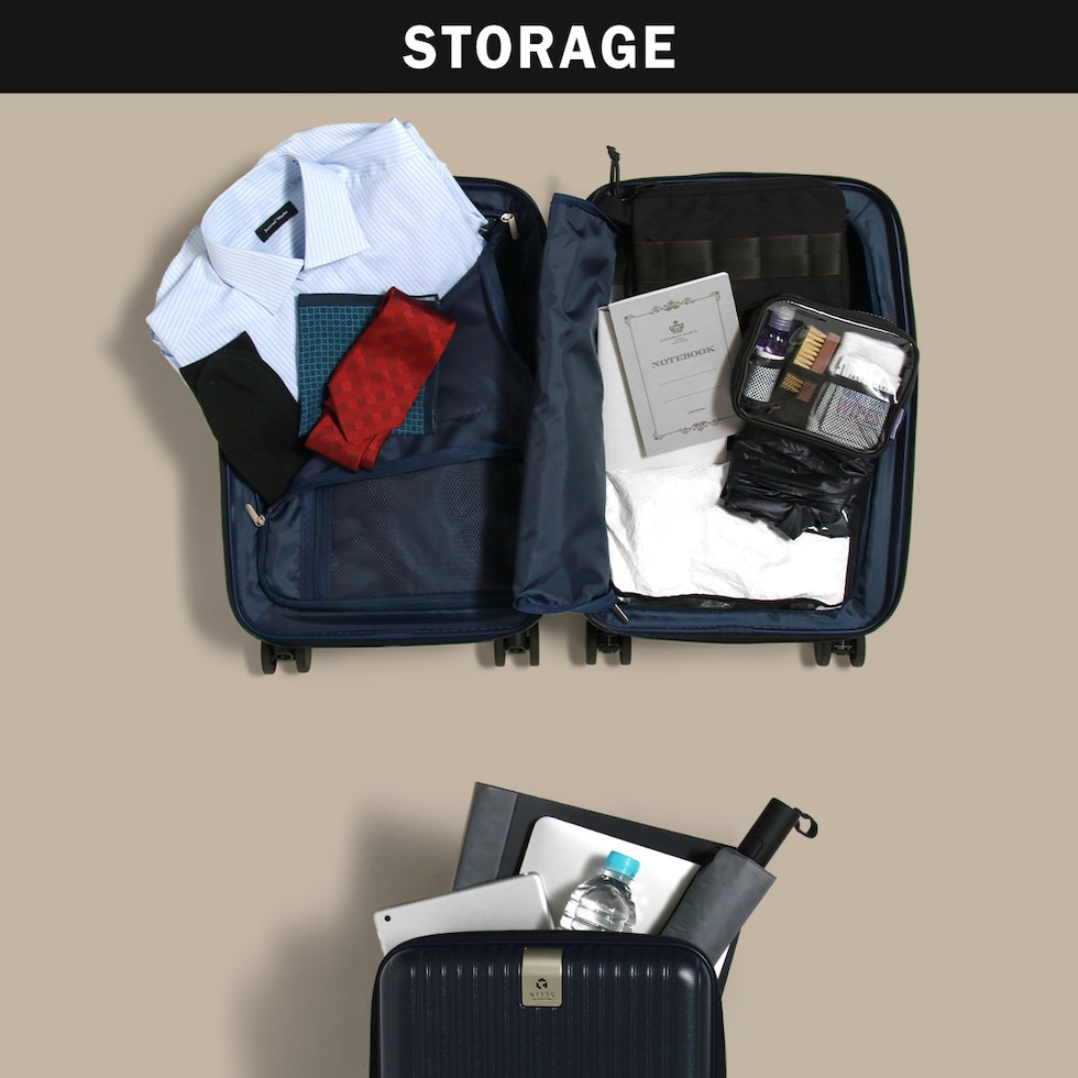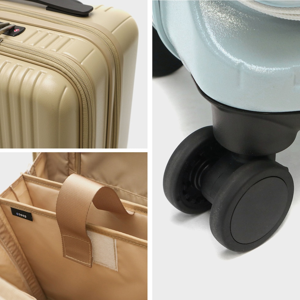 軽量かつ丈夫なボディに、抜群の機能を搭載した『G1990 JOURNEY ジャーニー』のスーツケース。容量32Lで機内持ち込み可能なこちらは、1~2泊程度の旅行に最適です。セキュリティ面に優れたTSAロックや、不意な走行を防止するキャスターストッパー、移動時の荷物管理に役立つフロントポケット等、実用的な機能性に加え、抗菌ハンドル・抗菌キャスターを装備する事で、現代のニーズに応えるハイスペックなモデルに仕上がっています。
