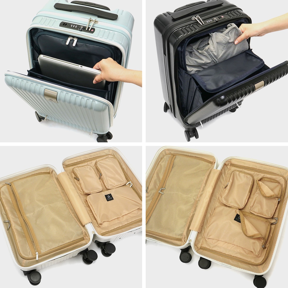 ・エキスパンダブル機能付きの製品は、マチ拡張時の3辺の和が機内持ち込みサイズ、預け入れ無料サイズを超える場合がございます。また、航空会社や飛行機の機種などによって規定が異なりますので、予めご確認の上お求めください。