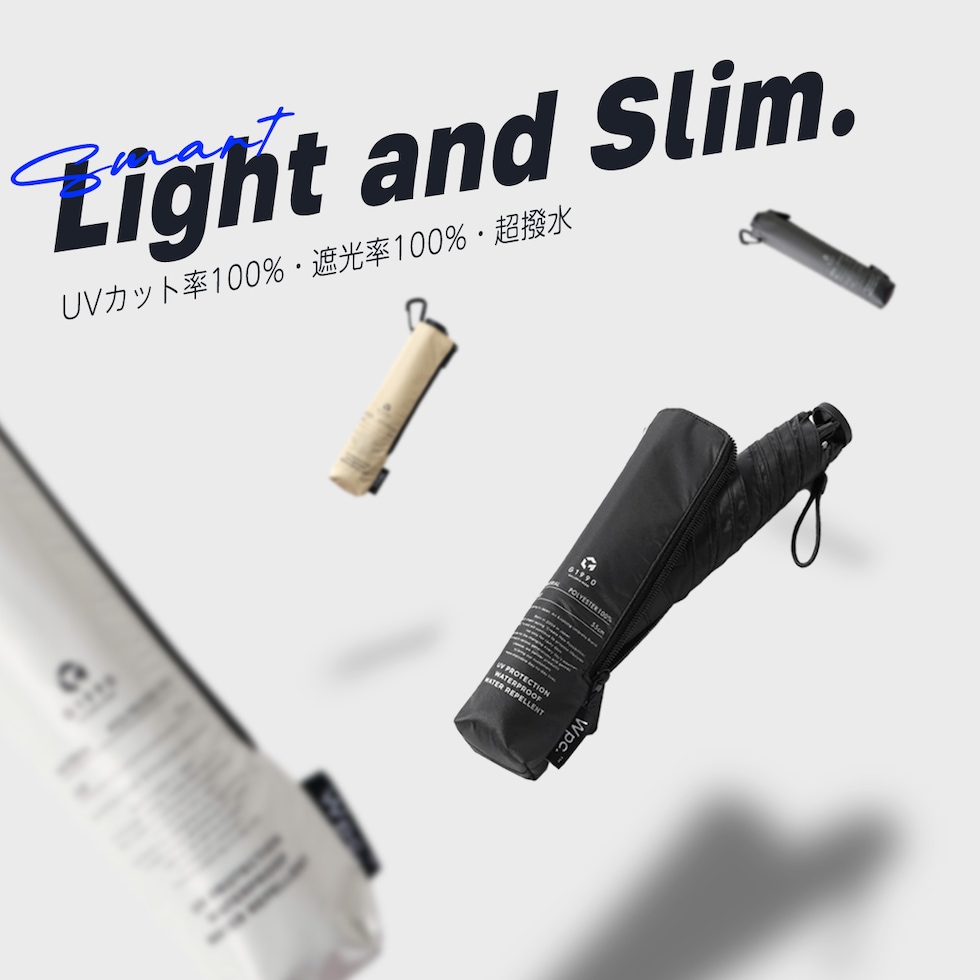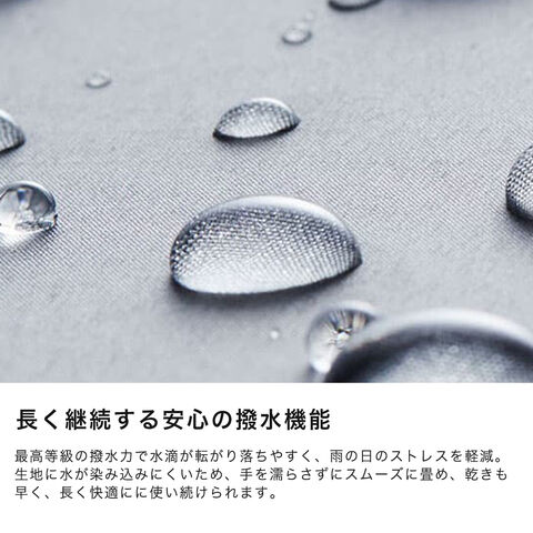 UVカット率100%、遮光率100%で遮熱効果があり、超撥水加工を施したハイスペックな生地を使用。強い日差しや急な雨からあなたを守ります。
