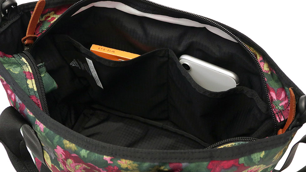 内装に小分け用ポケットが備わるので整理のしやすさも抜群です。スマートフォンやパスケースといった小物類が底に埋もれることなく管理できます。