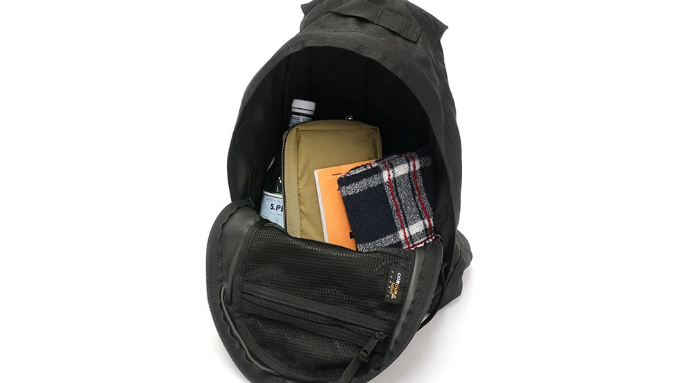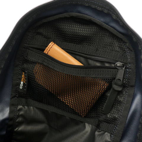 小ぶりといっても、大きく開くダブルジップの開口部で荷物の出し入れはとてもスムーズ。A4サイズ対応の十分な収納力をもったメインコンパートメントです。素材には耐久性に優れたコーデュラバリスティックナイロンを使用したタフな仕上がりになっており、活発な一日を支えてくれる優秀なアイテムです。