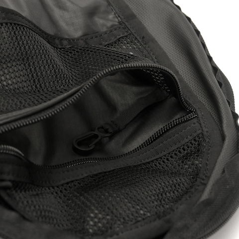 内側にはキーフック付きの視認性に優れたメッシュジップポケットを装備。また外側正面にもジップポケットが備わっており、小物整理の悩みを解決してくれます。さらに、登山をする方には便利なトレッキングポール装着用ストラップもついており、アウトドアでもマルチに活躍してくれること間違いなしです。