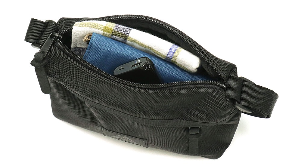 貴重品やハンカチなど、最低限のマストアイテムを入れておくのに便利なコンパクトサイズのメインルーム。身軽で快適なおでかけを叶えてくれます。厚手でしっかりとした生地なので、アクティブなおでかけにも大活躍するアイテムです。