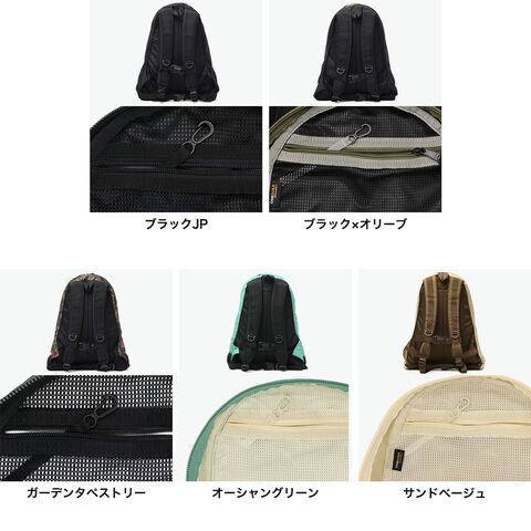 | 素材 | <表地> 420Dパッククロスコーデュラナイロン:ブラックJP コーデュラナイロン:サンドベージュ、ブラック×オリーブ ナイロン:オーシャングリーン ポリエステル:ガーデンタペストリー |
