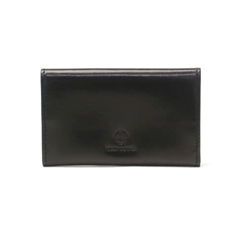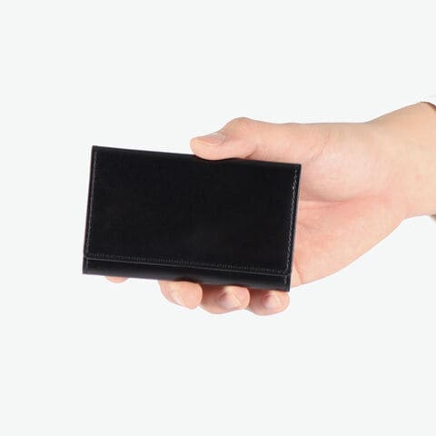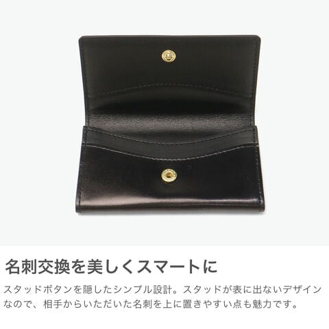スマートな名刺入れ 世界でも馬革だけを一貫生産し、かつコードバン製革ができる唯一の皮革メーカーである「新喜皮革」のレザーを使用した名刺入れです。スタッドボタンを隠し、シンプルかつ機能性にこだわったデザインが魅力。上品な光沢が美しく、大人の手元に品格を添えます。 |