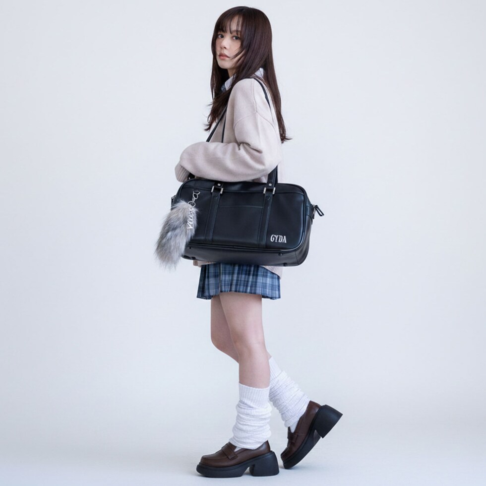 主役級デザインに注目! トレンド感溢れるフェイクレザーのスクールバッグが登場!付属の平成レトロなファーチャームやラインストーンロゴメタルが目を引く主役級のデザインです。内側はレオパードの総柄でさらにGYDAらしさを感じられます。A4対応やボトルホルダーなど、通学に便利な機能も完備。Dカン付きで自分好みのカスタムも楽しめます。実用性と圧倒的可愛さを兼ね備え、毎日の通学をおしゃれにアップデートしてくれるアイテムです。 |