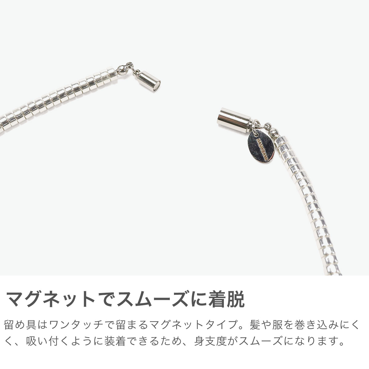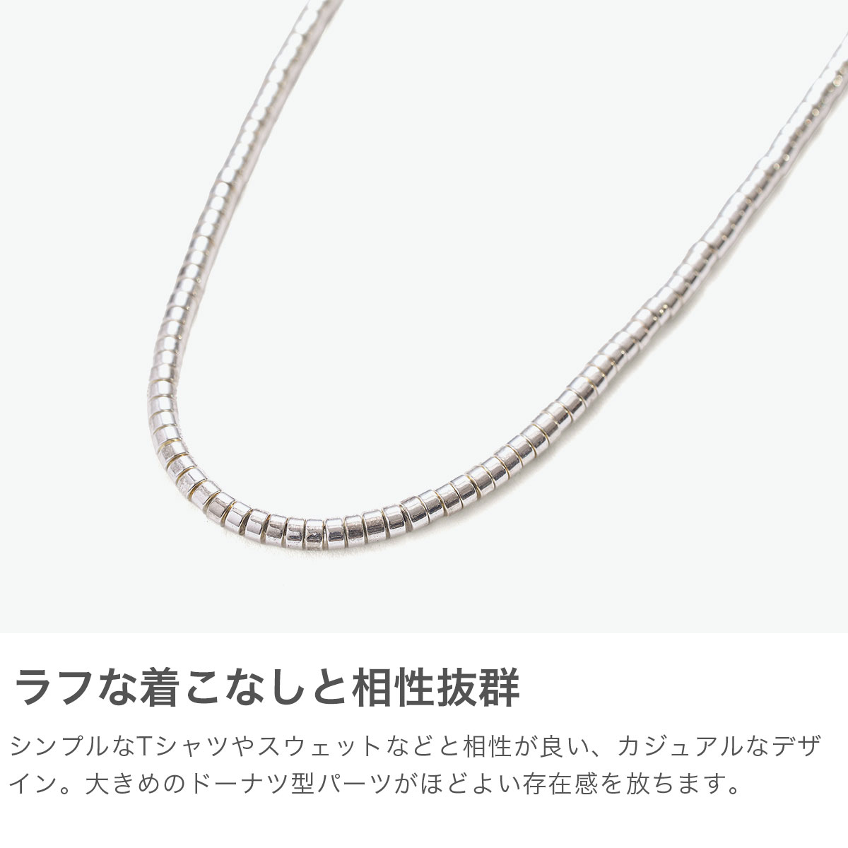 ハシバミ ネックレス レディース チェーン HASHIBAMI 天然石 ヘマタイト 留め具 マグネット ワンタッチ ポーチ付き 重ね付け シンプル おしゃれ 大人 女性 20代 30代 ドーナツ(大) シルバー 45cm HB2100249