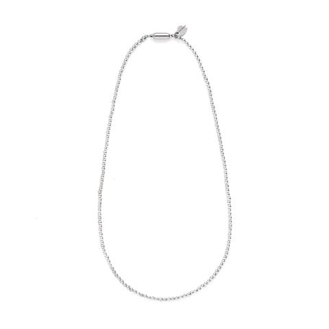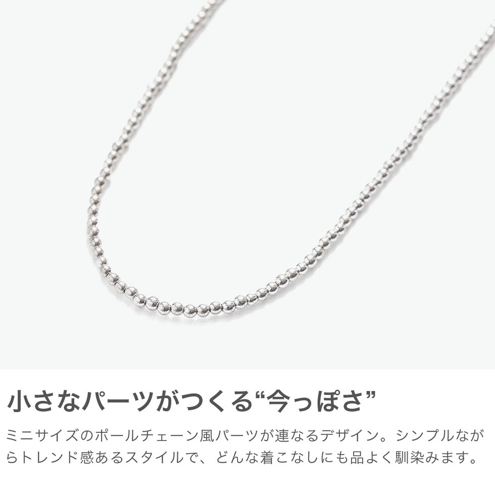 トレンド感ある可愛さ 天然石(ヘマタイト)を用いた、オリジナルアクセサリーコレクション。ミニサイズのボールチェーン風パーツがおしゃれなネックレスです。留め具はワンタッチで留まるマグネットタイプを採用し、着脱の煩わしさを軽減。単品使いはもちろん、他のネックレスとの重ね付けもおすすめです。 |