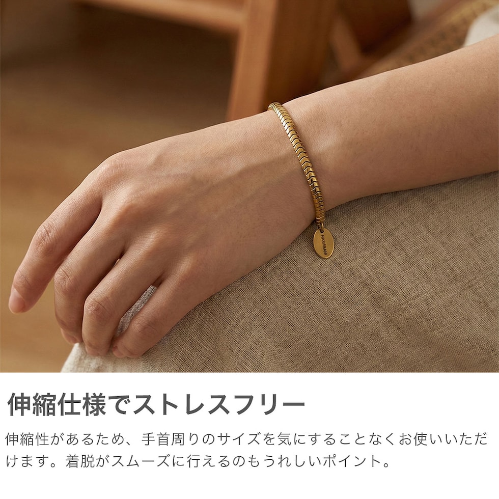 【メール便】 ハシバミ ブレスレット レディース ゴム HASHIBAMI ゴールド 天然石 ヘマタイト 伸縮 ブランド シンプル 上品 かわいい おしゃれ 腕輪 フリーサイズ 大人 女性 20代 30代 プレゼント スネーク風 HB2102217