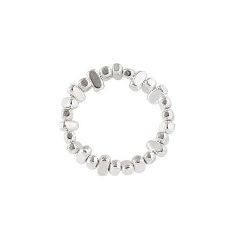 天然石(ヘマタイト)を用いた、オリジナルアクセサリーコレクションのリング。横長の立方体パーツが連なり、ひとつひとつが回転することで生まれる不規則な動きが、個性的で洗練された手元を演出します。単品使いはもちろん、重ね付けもおすすめです。指のサイズを気にせずお使いいただける伸縮性タイプも嬉しいポイント。プレゼントとしてそのままお渡しすることもできる、保管や持ち歩きに便利なオリジナルジュエリーポーチ付きのアイテムとなっています。