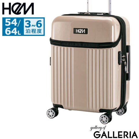 ヘム スーツケース キャリーケース Mサイズ フロントオープン HeM マチ 拡張 2泊3日 3泊4日 可愛い おしゃれ 修学旅行 M 軽量 リム 54L 64L 39-50700