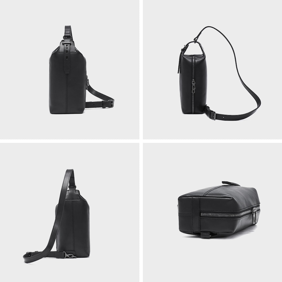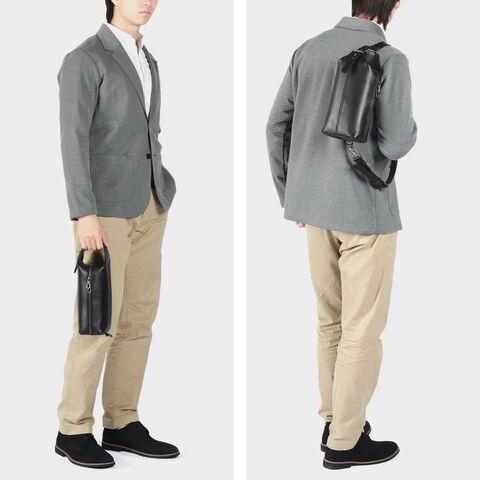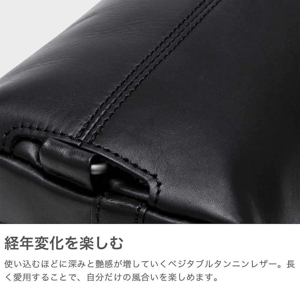 | 上質なレザーを愉しむ クラッチショルダー 2種類のベジタブルタンニンレザーを使用した2wayクラッチショルダー。ストラップの着脱によりクラッチバッグ、ショルダーバッグとして使え、さらにハンドル持ちも可能です。経年変化を楽しめる本格的なレザーと、マットな金属パーツがクールで男らしい印象を作ります。 |