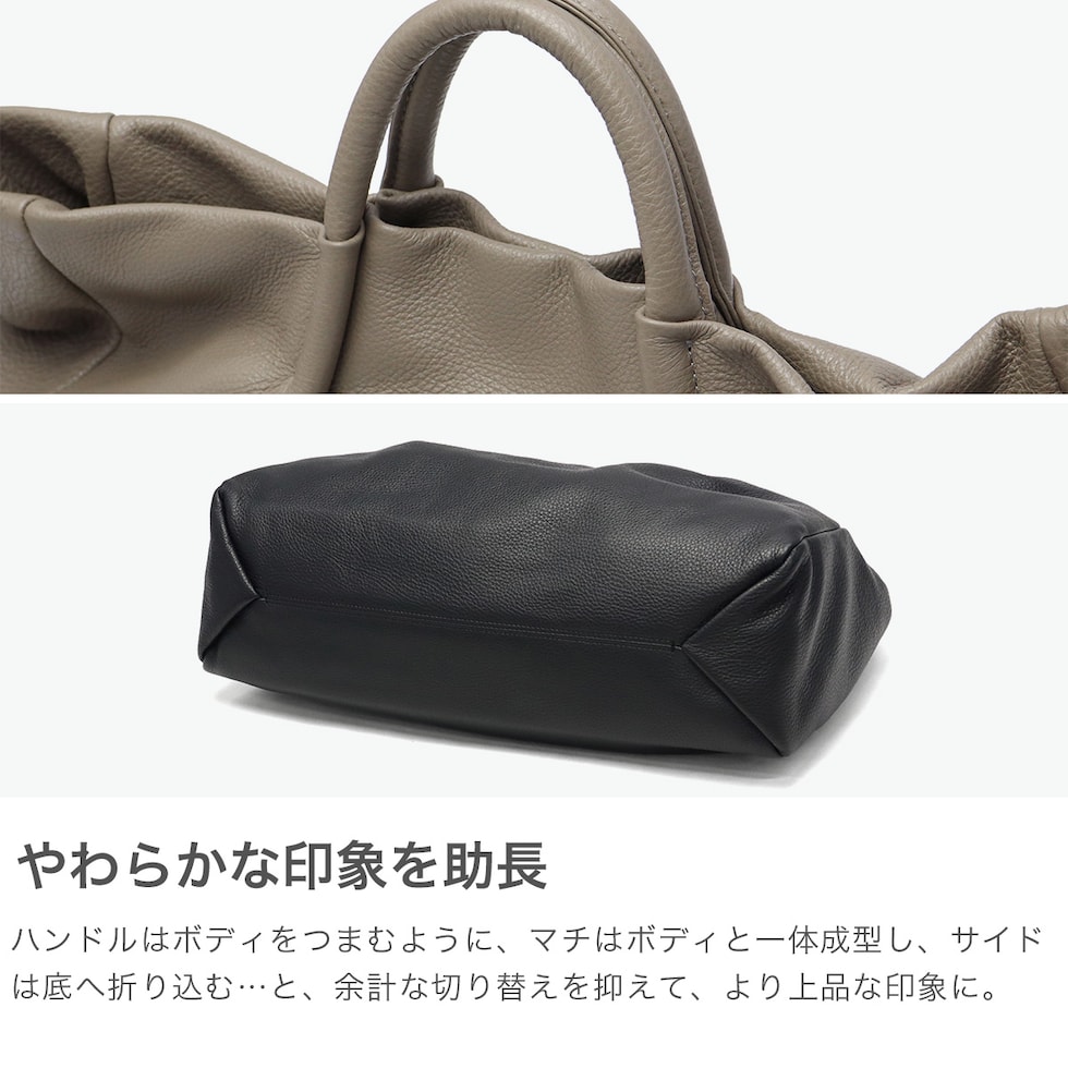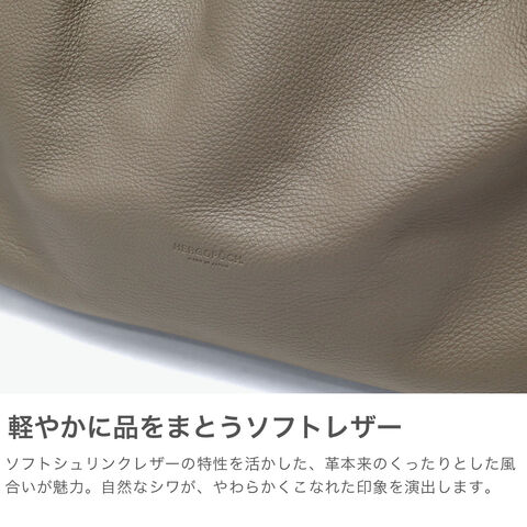 品格漂うトートバッグ HERGOPOCHの使用するレザーで最もソフトなシュリンクレザーを使用した『TC』シリーズの2WAYトートバッグ。余計なパーツの切り替えを極力減らし、やわらかく上品な印象に仕上げました。大ぶりなサイズながらかっちりしすぎず、洋服とのコーディネートを幅広く楽しめます。 |